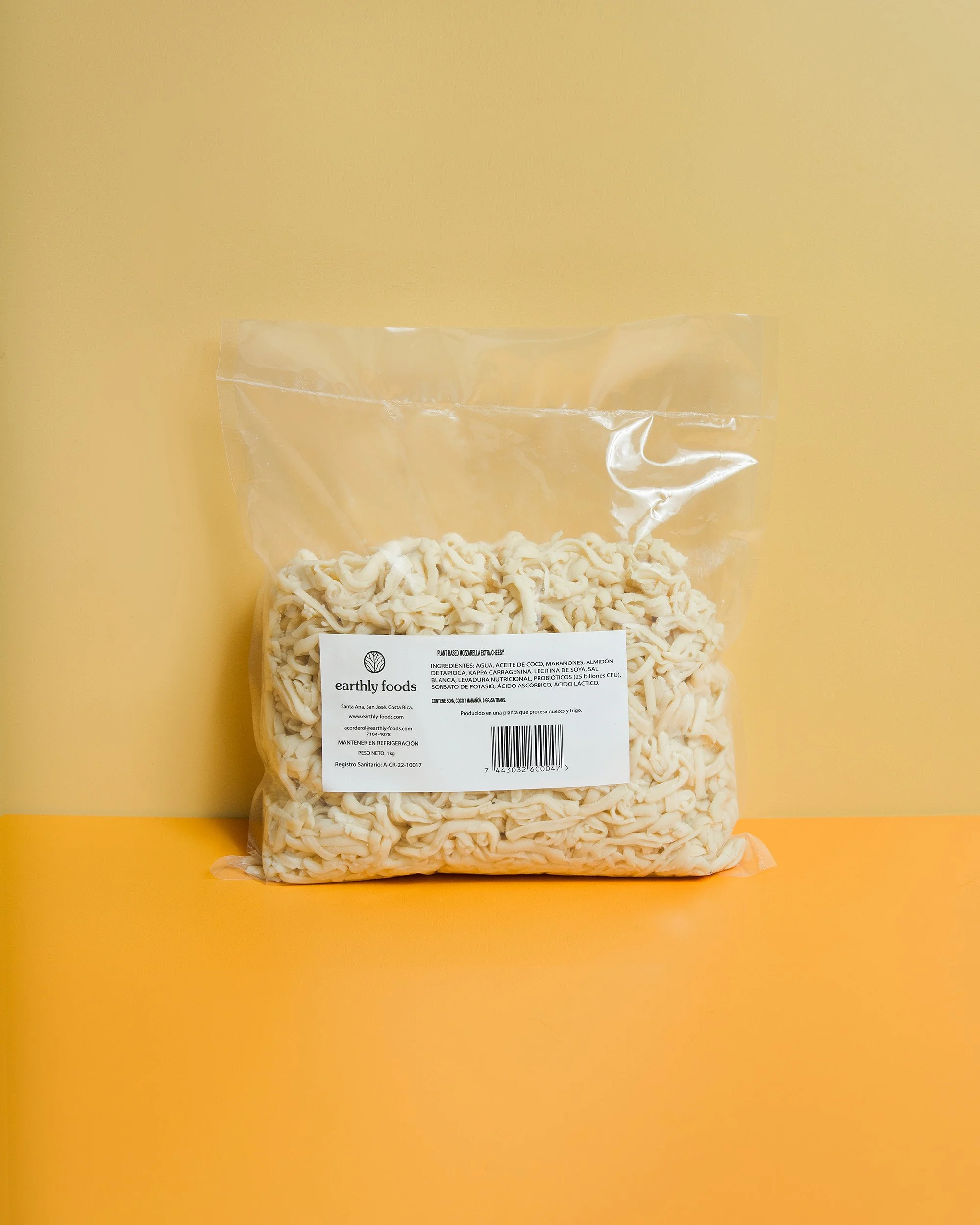 Mozzarella rallado 100 % libre de lácteos, a base de marañón. Saludable y bajo en grasas para disfrutar tus platos favoritos sin sacrificar sabor ni calidad.
